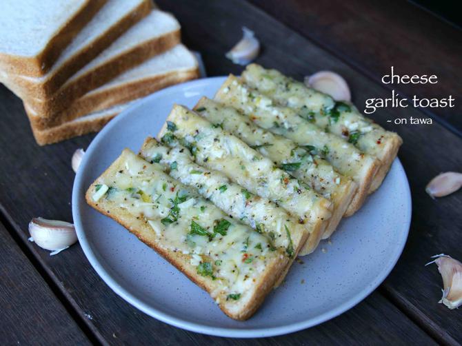 garlic cheese toast recipe | cheese garlic bread recipe on tawa with detailed photo and video recipe. a simple bread toast recipe with the flavour of freshly grated garlic with melted cheese and butter. garlic cheese toast can be ideal party starter or for your kids morning or evening tiffin boxes. the recipe can also be extended as per the individual taste by adding less or more cheese and even by skipping garlic flakes. garlic cheese toast recipe | cheese garlic bread recipe on tawa with step by step photo and video recipe. a simple snack food that can be prepared within minutes with your left over sandwich bread slices. these cheese garlic bread toast recipe are prepared with normal tawa, but can also be prepared with baking oven too.this recipe of cheese garlic bread toast was long due on me and i wanted to share it long before. the irony is, i prepare these garlic cheese toast very frequently with my left over breads for our evening snack and it took me so much time to share. actually even this time i wasn’t prepared to share it. while i was planning for my weekly schedule, i wanted to include a bread based recipes like a toast or sandwich. surprisingly, my husband suggested this simple recipe while he was enjoying cheese garlic bread for his evening just then i realised i had missed this bread recipe for so long.while there aren’t any complicated steps and the recipe is very simple, yet some tips and variations for garlic cheese toast. firstly, any type of breads can be used for this recipe. i have used simple white sandwich bread and can be extended to brown bread or multigrain bread. secondly, i have added mozzarella cheese however, you can add combination of mozzarella cheese and cheddar cheese which is typically used in pizza’s. while it is not must to follow but recommended. alternatively just mozzarella or cheddar cheese can be used. lastly, the recipe can also be prepared in a preheated oven at 180 degrees for 10-15 minutes.finally i would like to highlight my other with this post of garlic cheese toast recipe. this mainly includes, , , , , , , and . in addition do not forget to visit my other recipes collection like,garlic cheese toast video recipe:recipe card for garlic cheese toast recipe:4.07 from 16 votesgarlic cheese toast recipe | cheese garlic bread recipe on tawa easy garlic cheese toast recipe | cheese garlic bread recipe on tawaIngredients (1 cup = 255 ML) 2 tbsp butter softened ¾ cup mozzarella cheese grated 5 clove garlic finely chopped ½ tsp pepper crushed ½ tsp mixed herbs basil, marjoram, oregano, rosemary, sage, thyme, chilli flakes 2 tbsp coriander / parsley finely chopped 4 slices bread white / brown 1 tsp butter to toastfirstly, in a large mixing bowl take 2 tbsp butter and ¾ cup mozzarella cheese.also add 5 clove garlic, ½ tsp pepper, ½ tsp mixed herbs and 2 tbsp coriander.combine well making sure everything is mixed well.now spread 2 tbsp of garlic cheese stuffing over a slice of bread.toast with some butter or preheat & bake at 180 degree celsius for 10 minutes.make sure to cover and simmer for 3 minutes or till the cheese melts completely.finally, cut to desired shape and serve cheese garlic cheese toast or cheese garlic bread.how to make garlic cheese toast with step by step photo:notes: