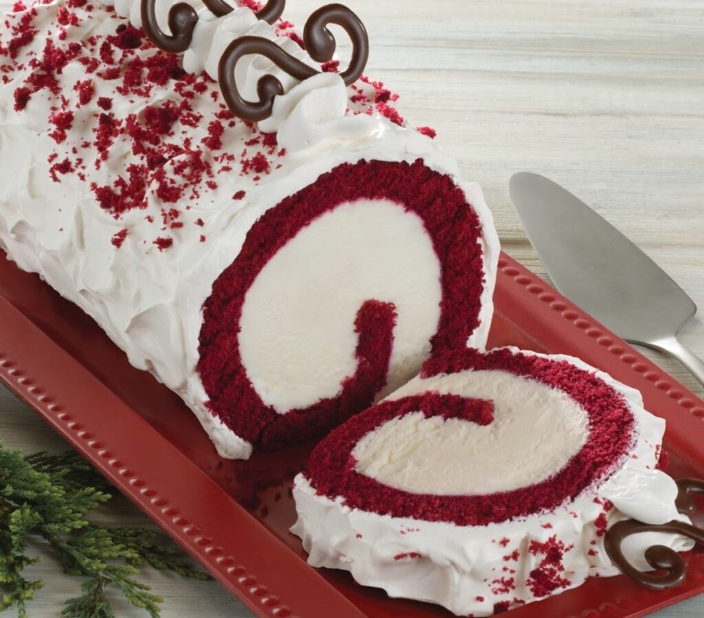Baskin Robbins has brought together ice cream, Swiss rolls, and red velvet cake in their newest treat, the Red Velvet Roll Cake.