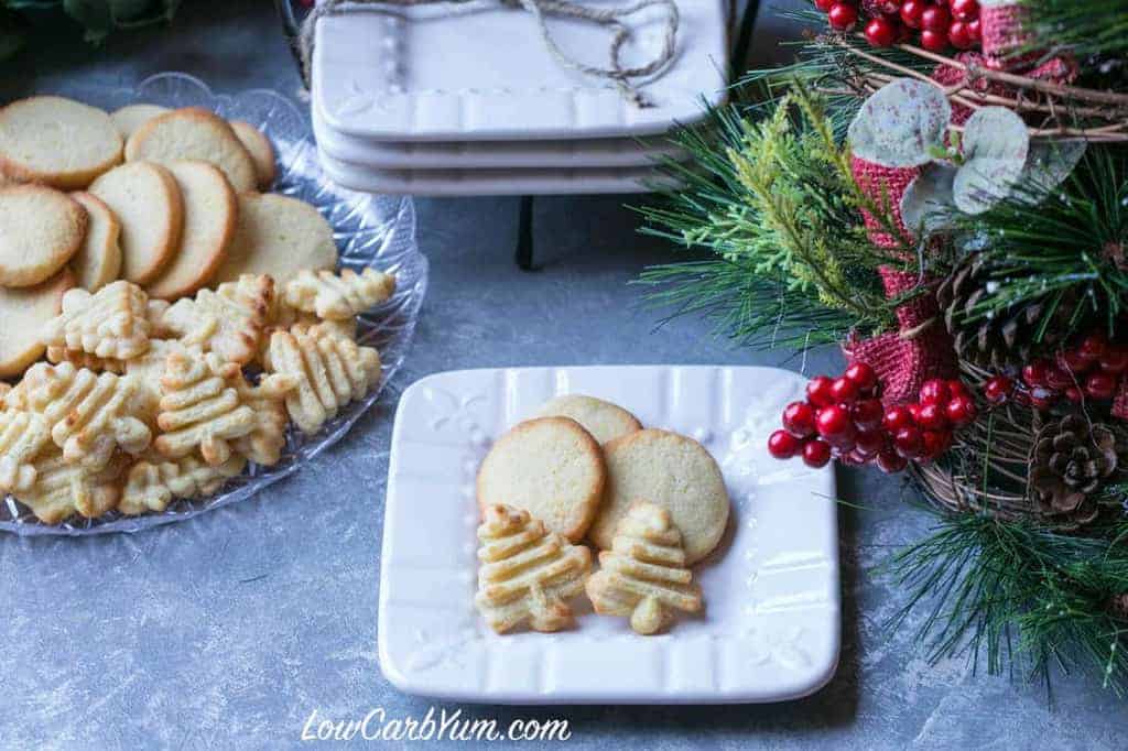 These wonderfully sweet and crispy keto cream cheese cookies are simple to make for a perfect holiday treat. You can press them into shapes, decorate them, or enjoy them plain!Get Recipes Delivered WeeklyJoin the Low Carb Yum email list and you’ll receive a free meal plan with 20 keto recipes. Plus, you can opt-in for special offers only for subscribers! Success! Now check your email to confirm your subscription.There was an error submitting your subscription. Please try again. Email Address IF YOU JUMP TO THE RECIPE USING THE LINK BELOW, BE SURE TO COME BACK AND READ THE VALUABLE TIPS AND INFORMATION IN THE POST. I THINK YOU’LL FIND THEM USEFUL IF YOU DECIDE TO MAKE THIS LOW CARB RECIPE.Something about cookies and the holidays go together so well. Maybe it’s all of the cookie-decorating traditions, or the fact that they’re Santa’s favorite snack. Either way, this is a great time of year to have plenty of keto cookie recipes on hand.I first created this recipe to decorate with my daughter for the holidays. We also love making my family’s traditional sugar cookies, which call for lard.The great thing about this recipe for low carb cream cheese cookies is that you probably already have all of the ingredients on hand. Plus, they only require a few steps before they’re ready to be sliced or pressed.They’re lightly sweet and crispy with golden-brown edges. I love the taste of them plain, but you can also decorate them if you want more sweetness.Whether you’re looking for a simple treat or planning for a day of cookie decorating, these cream cheese cookies are sure to be a big hit!How do these keto cream cheese cookies taste?As I mentioned earlier, these cookies are lightly sweet without being overly so. Since moving to a keto diet, I find I don’t need as much sweetness. These cookies are perfect for me.If you want your cream cheese keto cookies to have a bit more sweetness, they are a great base to decorate with icing or frosting. The flavor is really so versatile.You’ll also taste a slight hint of cream cheese. I find that cream cheese helps counter the cooling effect of erythritol and is very mild and pleasant.How many carbs are in keto cream cheese cookies?The net carbs per cookie will depend on how many cookies you create from the dough.I used a tablespoon scoop and a cookie press, which will yield more cookies than slicing. I was able to get 75 cookies from this dough, which came to half a net carb per cookie.If you bake large cookies, you’ll need to recalculate the net carbs. However, as long as you get 40-50 cookies from the dough, these will be less than 1 net carb per cookie.How to make cream cheese cookies ketoThese low carb cookies only require a few steps to make. However, the dough does need to chill, so you’ll want to factor that into the time. Start by creaming the butter and sweetener until light and fluffy, then beat in cream cheese and eggs. Once well-combined, stir in the almond flour, coconut flour, and xanthan gum (if using), then mix in the vanilla.Form the dough into a ball and then chill in the refrigerator for at least 4 hours or overnight.When you’re ready to bake, preheat the oven to 350°F. Squeeze the dough out of your cookie press or roll it out into a cookie log and slice.Bake the cookies until they begin to brown (about 8-10 minutes for pressed cookies or 10-12 minutes for slices). Cook longer for crisper cookies.Make sure you allow the cookies to fully cool to prevent crumbling. Cool on the counter, then refrigerate.Tips for baking cream cheese cookiesCookies made from low carb flours have a higher risk of crumbling. To help the dough stay together, don’t skip the chilling step!Using a cookie press helps to compress the dough, so you may not need to chill as long. If you’re using the slicing method, I recommend chilling the dough overnight.And of course, make sure you let the cookies fully cool after baking. The texture is best the next day if you refrigerate them overnight as well.I also prefer to bake these keto cookies directly on the cookie pan, without a silicone mat or parchment paper. They turn out crispier that way. The fat content in the cookies is high enough that they won’t stick to the pan.I’ve had a few readers ask about substituting flours and sweeteners in this keto cookies recipe. You’re welcome to substitute flours, but the texture may turn out differently. Sweeteners can be substituted without any difference.Recipe variationsThese cream cheese cookies are so versatile. There are plenty of variations to try!For a different flavor, try substituting the vanilla extract for lemon or orange extract. Or, add butter extract to enhance the buttery flavor.Some readers have mentioned adding nuts like pecans or dipping the finished cookies in low carb chocolate for an indulgent treat.I also think the almond flavored icing that I use in my ricotta cheese cookies recipe would make a great frosting. Again, feel free to play around with the extracts.If you come up with your own variation, be sure to let me know in the comments!Other low carb cookie recipesLooking for more low carb, sugar free cookie recipes to make this holiday season? Check out a few of these other favorites:★ Follow Me on FACEBOOK, PINTEREST and INSTAGRAM for more low carb recipe ideas. ★ Sign up for the Low Carb Yum NEWSLETTER for the latest updates and a FREE Meal Plan.Cream Cheese Cookies – Gluten FreeYummy low carb cookies made with cream cheese. These tasty sugar free cookies can be pressed or cut into festive shapes for any holiday. Keyword keto cookies, low carb cookies, sugar free cookiesAs an Amazon Associate I earn from qualifying purchases.Cream the butter and sweetener until light and fluffy.Beat in the cream cheese.Add in the eggs.Stir in the the flours and xanthan gum (if using), then mix in the vanilla.Chill dough for at least 4 hours .Squeeze dough out of cookie press or roll out into a cookie log and slice.Bake at 350F until coo