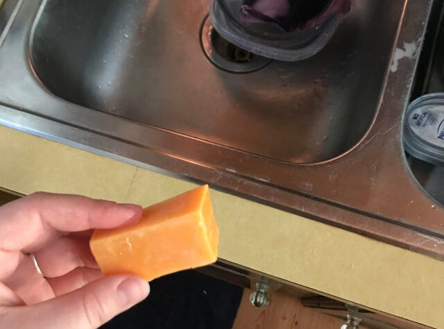 A WOMAN was in stitches after realising she’d mistakenly been using a block of cheese as a bar of soap...