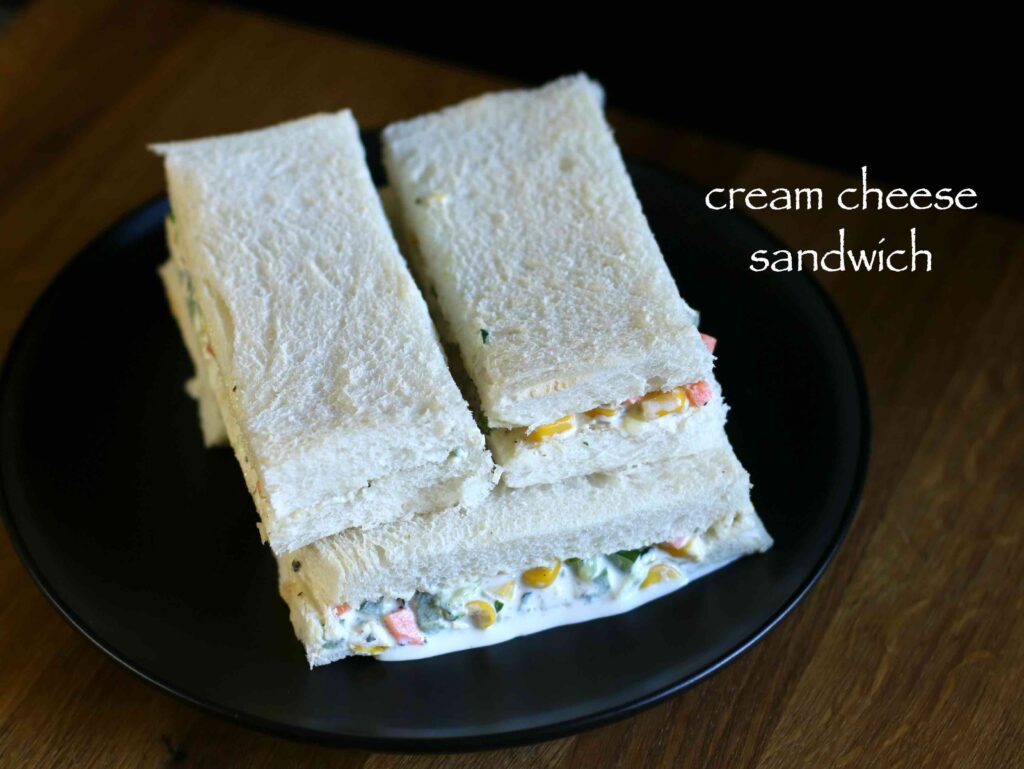 cheese sandwich recipe | veg cream cheese sandwich recipe with detailed photo and video recipe. basically a sandwich prepared with cream cheese mixed with finely chopped vegetables. ideal sandwich recipe for lunch box, evening snacks and even for potluck or road trips. cheese sandwich recipe | veg cream cheese sandwich recipe with step by step photo and video recipe. an easy quick and more importantly tasty sandwich recipe prepared with few basic vegetables. lunch, dinner or breakfast, this cheese cream sandwich recipe can be prepared within 10 minutes. moreover, veg cream cheese sandwich can also be packed for lunch boxes and also can be a easy on-the-go meal.this simple veg cream cheese sandwich recipe can be extended with the choice of vegetables. i prepare this sandwich recipe quite often and each time i end with different vegetables. in this recipe i have used, cucumber, carrots, corn and capsicum. but not limited to used other vegetables like cabbage, mushrooms, spinach and certainly beetroots. moreover, this sandwich recipe can also be grilled to make it grilled cheese cream sandwich recipe.furthermore, some tricks and tips for a perfect sandwich recipe. firstly, if cucumber is used, squeeze all the water before adding to cream cheese. otherwise, the sandwich would be soggy and moist. secondly, add some green chillies to make veg cream cheese sandwich spicy. i have skipped green chillies and to add only black pepper. lastly, be careful while adding salt to the cream cheese. usually cream cheese contains sufficient amount of salt in it.finally, i would like to highlight my other sandwich recipes collection. particularly, , curd sandwich, bombay sandwich, grilled veg sandwich, pin wheel sandwich and simple veg sandwich recipe. in addition, do visit my other recipes collection board, likecheese sandwich recipe | veg cream cheese sandwich video recipe:recipe card for cheese sandwich recipe | veg cream cheese sandwich:4.13 from 8 votesIngredients (1 cup = 255 ML) 4 sandwich bread brown / white ½ cream cheese ¼ cup sweet corn boiled 1 carrot finely chopped ¼ cup capsicum finely chopped ½ cup cucumber grated 1 tsp pepper powder ½ tsp mixed herbs thyme, rosemary, marjoram, basil, oregano, sage – optional salto tastefirstly, in a large mixing bowl take cream cheese.furthermore, add vegetables of your choice like boiled sweet corn, carrot and capsicum.also add cucumber. remember to squeeze off the juice off cucumber else the bread will turn soggy.further, cut the bread sides.spread a spoonful of prepared cream cheese stuffing over one slice of bread.then, cover with the other slice of bread.gently press and cut to the desired shape of your choice.finally, serve cream cheese sandwich with masala tea.how to make cheese sandwich recipe with step by step photo recipe:notes: