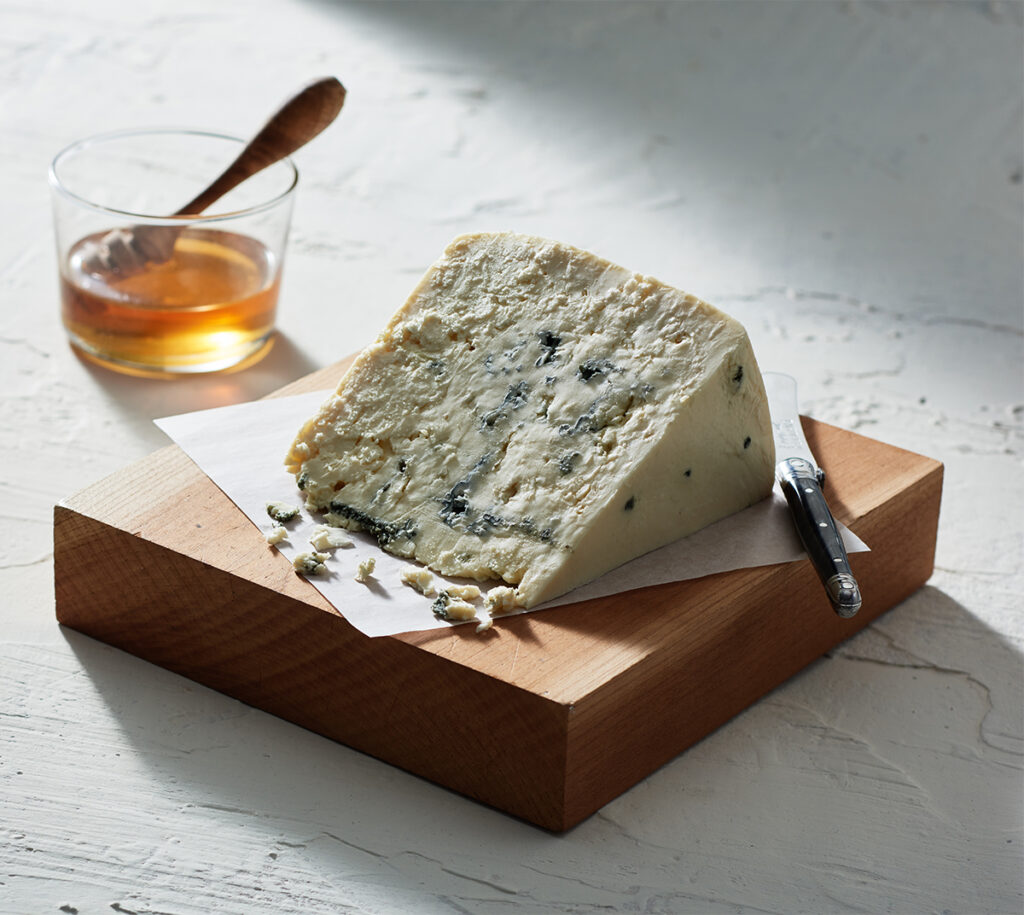 Few cheeses inspire the kind of passionate response that a mere mention of blue cheese does. From those who say, “I just don’t like blue cheese,” to those who couldn’t live without a regular serving of their favorite creamy blue at every meal, everyone has an opinion to share. Whatever camp you fall into (or if you’re just not sure yet!) we hope this guide to good-ole blue will inspire you to expand your horizons and appreciate what makes this funky cheese so special.Cheese History: The Story Behind Blue CheeseThe origins of blue cheese are shrouded in legend and myth. The most popular genesis story transports us to a cave near the village of Roquefort, France in the 7th century where a young shepherd abandoned his half-eaten lunch of bread and cheese after being distracted by a beautiful maiden. Upon returning to this cave a few months later, he discovered his leftover cheese had been covered with the famous blue mold we know now as Penicillium roqueforti. While this story certainly inspires the cheese-loving romantic in us, researchers have their doubts about its accuracy. For one, scientists have yet to find naturally-occurring P. roqueforti in caves or cellars. Additionally, blue’s classic veining generally comes from the growth of mold inside the cheese—mold that grew on the outside would be unlikely to create anything similar to the blue we recognize today. So how was blue cheese actually created? No one can say for certain. The best evidence available around the legendary tale is that P. roqueforti, like many microbes, occurs naturally in the environment and tends to grow prolifically on grains. This leads us to infer that either the milk used for the cheese or the grains of rye in the bread contained spores of P. roqueforti. This makes sense, as many early cheesemakers used spores from moldy rye bread to craft their blue cheese. Cheese Science: The Molds Behind Blue CheeseAs we talked about in our guide to cheese tasting, cheese is a made up of living, breathing natural microorganisms that help create the flavors we know and love. In the case of blue cheese, the fungi Penicillium roqueforti is what creates the distinctive smell, flavor, and blue veins. So, do all blue cheeses that use P. roqueforti taste the same? Of course not! There are several well-known species of Pencillium fungi used in the making of blue cheese, including P. roqueforti, and P. glaucum. P. glaucum is most commonly associated with Gorgonzola, and typically has a greener appearance. Some blue cheeses even use both strains. Additionally, it’s unlikely that any two blue cheeses will taste alike, even if they used identical samples of P. roqueforti. Both P. roqueforti and P. glaucum are closely related to the white powdery molds that colonize brie styles of cheeses. These aerobic molds need oxygen to thrive, and they are pierced as part of the aging process in order to allow oxygen into the wheels. This results in the distinctive veining that is typical with blue cheese.All About Blue CheeseAre there different types of blue cheese?You bet! From crumbly to creamy and everything in between, there are countless varieties of blue cheese to try. We’d venture to guess that most people who claim they don’t like blue cheese just haven’t tried the right blue cheese for their palate yet. Crumbly blue cheeses tend to be more piquant than their creamy counterparts and can be overwhelming to someone taking their first bites of blue. If you’re new to blue, try a creamy, milder variety to acclimate your palate. If you’re wondering what other types of moldy cheese are out there, our guide to moldy cheese is a great starting point.Must-try Wisconsin Blue CheesesRoth Buttermilk Blue: Rich, creamy, and delightfully tangy, this blue from Roth Cheese is a sterling example of a mild and easy-going blue that turns blue skeptics into lovers.Deer Creek The Blue Jay: What happens when you add five 10-gallon containers of cream to each batch of cheese? Answer: The Blue Jay made by Deer Creek Cheese. This cheese manages to be bold and unapologetically blue while still maintaining an impossibly creamy and smooth finish—thanks to the quintuple serving of cream added to each batch. The Blue Jay is also infused with crushed juniper berries that complement blue’s natural earthiness with some botanical flavor. Hook’s Original Blue: If we could only pick one cheese to represent the essence of blue, this cheese from Hook’s Cheese Company would be high on our list. Aged for just over 12 months, this blue strikes a perfect balance, boasting a strong yet approachable flavor with just a touch of sweetness.Carr Valley Glacier Penta Creme: This three-time award winner from Carr Valley is another decadent five-crème blue pioneered by Master Cheesemaker Sid Cook. The generous addition of cream makes this cheese incredibly smooth while embracing the barnyard-y goodness that blue is famous for.What does blue cheese taste like?Relative to other cheeses like cheddar, even mild blues can pack quite a strong flavor profile. Most blue cheeses will taste salty, bright, and a bit funky or earthy. Unlike a mild cheese such as Colby, blue has a flavor that likes to be front-and-center in any dish or pairing. There’s no mistaking the taste of blue!What gives blue cheese its flavor?Blue cheeses distinct and often earthy flavor comes from the intentionally introduced fungi, Penicillium roqueforti. This mold breaks down some of the fat within the cheese, turning it into different compounds that change the flavor and aroma of the cheese. Although this mold plays a key role in the taste of blue cheese, there are countless other factors that influence the taste of blue cheese. Cheesemakers can use milk from different seasons, change how the cheese is aged, and more to create entirely unique blue cheeses. Pairing Blue CheeseWhile the prospect of pairing a big, bold blue might be intimidating, there are a surprising number of drinks that 