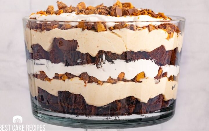 Peanut butter and chocolate lovers will go crazy over this Reese’s Butterfinger Cream Cheese Trifle. It has an chocolate cake layered...
