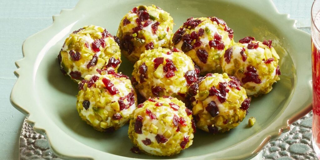 Every item on this page was chosen by The Pioneer Woman team. The site may earn a commission on some products. Con Poulos When you’re planning this year’s holiday appetizer spread, keep it simple. Ree’s festive happy hour snack only calls for four ingredients and is guaranteed to be the first to disappear at any soiree. In this recipe, the funky tartness of goat cheese is balanced with cream cheese, then the mixture is refrigerated until firm, about 15 minutes. From there, it’s scooped into balls and rolled in dried cranberries and finely chopped pistachios.  To make things easier, go with salted pistachios that have been shelled, or feel free to swap out them out for toasted pecans or walnuts. For the cheese mixture, finely chopped herbs like rosemary, thyme, parsley, or chives would add a wonderful freshness, and a bit of lemon zest would brighten things up. Though both additions are optional, as the recipe is perfect as written.  How do you firm up a cheese ball? You’ll need to chill the cheese mixture until you’re able to easily form balls that hold their shape. This should only take about 15 minutes but will depend on how warm your kitchen is.  What is a cheese ball made of?  Most cheese balls are made with a cream cheese base. Goat cheese is an excellent addition because it can easily hold its shape when chilled, but you can add shredded cheese, too.Advertisement – Continue Reading Below Prep Time: 0 hours 10 mins 2 oz. cream cheese, at room temperature cream cheese, at room temperature 1/2 c. finely chopped dried cranberries finely chopped dried cranberries 1/2 c. finely chopped pistachios finely chopped pistachios This ingredient shopping module is created and maintained by a third party, and imported onto this page. You may be able to find more information about this and similar content on their web site. Mix the goat cheese and cream cheese in a bowl with a mixer until uniform in texture. Refrigerate until firm, about 15 minutes.Combine the cranberries and pistachios on a plate. Scoop the cheese mixture into small balls, then roll in the cranberry-pistachio mixture to coat completely. If you aren’t serving right away, place the balls on a plate, cover with plastic wrap and refrigerate. This content is created and maintained by a third party, and imported onto this page to help users provide their email addresses. You may be able to find more information about this and similar content at piano.io