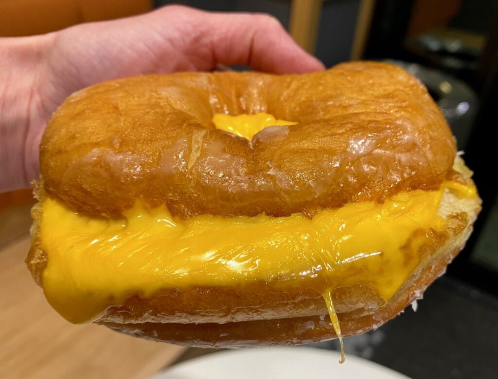 Walt Disney World just keeps upping its game as a go-big-or-go-home food destination. From an over-the-top secret menu , just dropped on TikTok, to half-pound cookies commanding , every time we open Instagram, Disney World shows up with a new trending dish tempting us to ditch those New Year’s resolutions. Everglazed Donuts & Cold Brew, a new donut shop at Disney Springs, Disney World’s shopping, dining and entertainment district, joined the fray Jan. 6 with a menu of elaborate donuts piled high with colorful cereals, candy, cookies, frosting, and even bacon. But, nothing from Everglazed caught my eye quite like the Grilled Cheeeeeese — an ooey-gooey cheese explosion you can order served on — you guessed it — a donut. When I saw my friends at Disney Food Blog share this wild donut, I had to try it for myself — and get the scoop from the Everglazed team about how they came up with this decadent creation. “We knew we wanted a couple of savory sandwiches to compliment the sweet donuts and what’s better than a classic grilled cheese with a twist?” said Everglazed Managing Director Mike Crave. “It’s comfort food, it’s nostalgic, and it’s the king of variations when it comes to sandwiches.” The original Grilled Cheeeeeese is $6 and comes on a soft, sweet, round bun, which Crave says is similar to King’s Hawaiian Bread. But, for an extra dollar, guests can substitute a griddled, glazed donut in place of the bun. “Our chefs grill the sweet bun halves on the cut sides, flip them over and then pile on the cheese — and we mean pile it on,” Crave says. “We use four slices of American cheese — the best for meltability. As the cheese begins to melt, the halves are put together and the sandwich is griddled until the cheese is ready to ooze.” So, how’d it taste? Luckily, I was starving, because this sammie is rich. It comes out lightning-fast and the thick layer of cheese is, as promised, oozing. Even after heating, the outside of the freshly-made donut still keeps its sugary, crisp glaze. It’s also messy, probably best eaten with a fork and knife, but I had to pull it apart to get a better look at that cheese. The overall flavor is definitely more sweet than savory, so if you’re in the mood for salty, it’s probably best to get this one on the griddled bun. But, if that salty-sweet combo is your thing, this sandwich hits all the right notes. On your way to Everglazed’s counter, you can sneak a peek in the kitchen and watch the donuts being made. Donuts range in price from $4.50 to $5.50, and they are BIG. Other savory sandwiches on the menu include The B&G Burger and The Funky Chicken fried chicken sandwich.