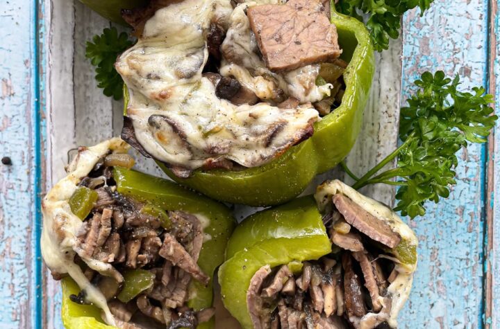 Philly Cheese Steak Stuffed Peppers are a fun and delicious twist on traditional stuffed peppers, using sliced roast beef, onions,...