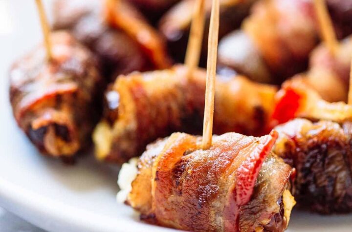 Well well well well well. What have we here? To my hungry eyes, this looks like bacon-wrapped dates: soft, sweet Medjool...