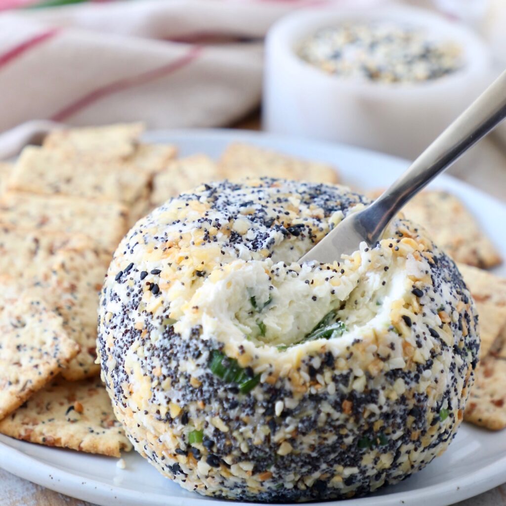If you love an everything bagel with cream cheese, then you’re really going to love this Everything Bagel Cheddar Cheese Ball recipe! It’s easy to make in 10 minutes, incredibly flavorful and perfect for a salty snack or party app! Thank you to my friends at Cabot for sponsoring today’s post! Since 2017, Everything Bagel Seasoning has become a go-to seasoning blend for way more than just bagels. And for good reason, the combination of poppy and sesame seeds, dried garlic and onion, and flaky sea salt is delicious! Today, I’m pairing my favorite seasoning blend with my favorite cheese, Cabot Extra Sharp Cheddar Cheese. This award-winning cheese is aged one year for a robust flavor and luscious texture. Shredded up and combined with cream cheese, Worcestershire sauce and green onions, this cheddar cheese makes the best, most flavorful cheese ball! Around the holidays, my family always has a cheese ball (or 3) hanging out in the fridge for a quick snack or even an easy lunch paired with sliced salami and crackers. Nothing quite reminds me of the holidays as much as a classic cheese ball and my Mom’s sugar cookies! It’s a great appetizer to serve during the holiday season, for game day, or anytime of the year. Since it only takes 10 minutes to make, you can make this your go-to party appetizer year-round! The everything bagel seasoning on the outside of the cheese ball adds an exciting new layer of flavor and texture. Impress all of your friends with this homemade cheese ball at your next party! I’ll even show you how to make it into a cute little snowman for holiday parties! Ingredients Step by step instructions What to serve with it This cheese ball pairs perfectly with a variety of crackers or vegetables. Here are some ideas to get you started! Frequently asked questions How to make a snowman cheese ball If you want to get really cute for the winter months and holiday season, double the recipe and make a cheese ball snowman. Just follow these 3 simple steps! Easy as that, you have an adorable, cheesy, festive appetizer! More cheesy appetizer recipes Cabot is 100% owned by family farms throughout New England and New York. That means that each time you purchase Cabot products, 100% of the profits go back to the hard-working farmers that help make the worlds best cheddar! Support a farmer and eat delicious cheese, that’s a win in my book! Be sure to visit CabotCheese.coop for even more cheesy recipe ideas and to learn where to find their products at a grocery store near you! Everything Bagel Cheddar Cheese Ball If you love an everything bagel with cream cheese, then you’re really going to love this Everything Bagel Cheddar Cheese Ball recipe! It’s easy to make in 10 minutes, incredibly flavorful and perfect for a salty snack or party app! Servings: 8 people In a large mixing bowl, combine the softened, cubed cream cheese, grated cheddar cheese, diced green onions, worcestershire sauce and 1 tablespoon everything bagel seasoning.Form the mixture into a ball.Spread the remaining 2 tablespoons of everything bagel seasoning onto a sheet of plastic wrap.Roll the cheese ball in the seasoning until it’s coated on all sides.Wrap the plastic wrap around the ball and place in the refrigerator for at least 30 minutes before serving. To easily soften the cream cheese, leave it out at room temperature for 30 minutes. The cheese ball can be made up to 5 days in advance. Wrap it in plastic wrap and store it in the refrigerator until ready to serve. If the cheese ball is served immediately after it’s made, any remaining cheese ball can be wrapped up and stored in the refrigerator for up to 5 days. This cheese ball recipe is gluten free, using the ingredients that you see pictured above in the post. While Lea & Perrin’s Worcestershire Sauce, sold in the US, is gluten free, it’s always a good idea to check the label on any other brand of sauce, just to make sure it’s gluten free. Serve the cheese ball with vegetables or gluten free crackers. This recipe is not vegetarian because Worcestershire sauce generally contains anchovies or fish sauce. To make it vegetarian, look for a vegan or vegetarian version of Worcestershire sauce to use in the recipe. Nutrition FactsCalories 173kcal (9%)Carbohydrates 2g (1%)Protein 6g (12%)Fat 16g (25%)Saturated Fat 9g (45%)Polyunsaturated Fat 1gMonounsaturated Fat 4gCholesterol 46mg (15%)Sodium 187mg (8%)Potassium 82mg (2%)Fiber 1g (4%)Sugar 1g (1%)Vitamin A 554mg (11%)Vitamin C 1mg (1%)Calcium 162mg (16%)Iron 1mg (6%) Did you make this recipe?Tag @WhitneyBond on Instagram and hashtag it #WBRecipes! We are a participant in the Amazon Services LLC Associates Program, an affiliate advertising program designed to provide a means for sites to earn advertising fees by advertising and linking to amazon.com.