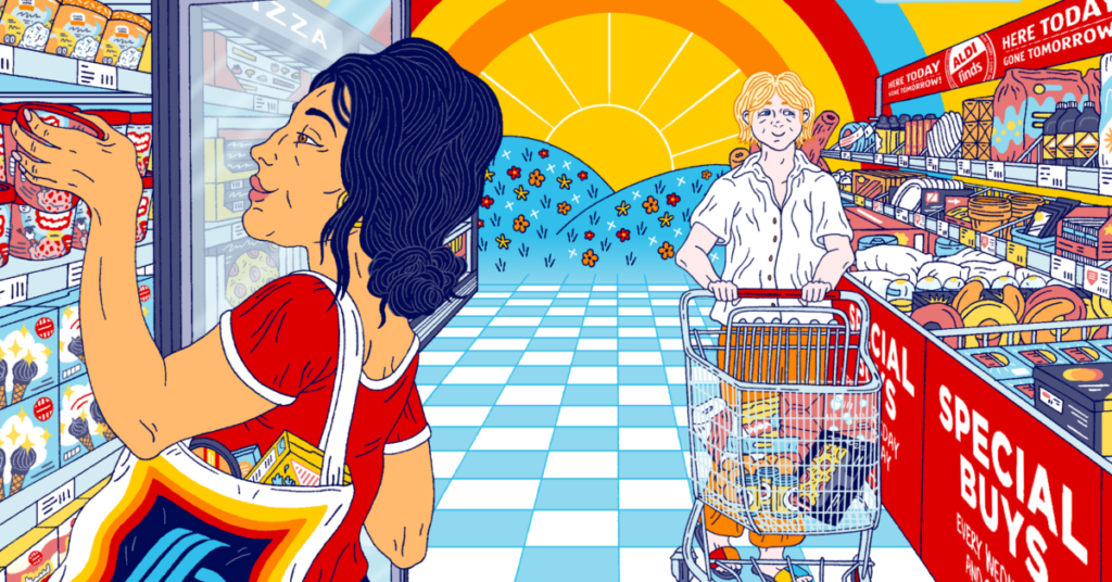 The future of grocery shopping might just be a 100-year-old grocery chain with a cult following. A few weeks ago, a friend posted an Instagram story from inside Aldi, the pioneering discount grocery store that is slated to become the third-largest supermarket chain in the United States. They mentioned that they frequent their local Aldi in Kansas City anytime they need to cheer themselves up. I recognize this behavior too well. The grocery store became a source of solace for me when I moved to New York after graduating from college in Chicago in 2009. I remember going to Westside Market on 110th and Broadway on the Upper West Side and ogling their prepared dessert fridge. I’d stare for what felt like hours at individual slices of cheesecake (in a variety of flavors—chocolate, strawberry, mango—an array I’d only ever seen on a Cheesecake Factory menu), pies, and cake, realizing the enormity of my newly granted freedom and independence: I’m an adult with a job and money, and I can buy the groceries I want. I could eat a whole cake for dinner if I chose. The aisles of the grocery store were like a red carpet ushering me into the best parts of adulthood. I’ve since left New York, but the habit has stuck: when I need to shake something loose, when I’m stressed out, or when I just need a reminder of my autonomy, I go to the grocery store. The grocery store itself doesn’t matter, and on a particularly rainy afternoon just before Valentine’s Day, I decided to spend an aimless and uninspired afternoon wandering the aisles of Aldi. And then things got interesting. Aldi has a massive following, with a growing presence in the United States, where there are 2,100 stores in 38 states operating, but its popularity is extending worldwide. From hundreds of fan accounts on Instagram to Facebook communities dedicated to following the chain’s limited and sometimes nonsensical food and product drops (called “Aldi Deals” or “Aldi Finds,” small-run items shelved in the middle aisles of the store, which superfans colloquially call the “Aisle Of Shame”), Aldi has generated a coterie of shoppers that seems somewhat misaligned with its aesthetics and overall vibe. However, despite the lack of a soundtrack underscoring your shopping experience, the halls of Aldi are filled with joy and a sense of excitement that is made accessible through its lower price points. If the joy of shopping at Aldi is built on relief and affordability, it’s kindled by chaos.On the surface, Aldi might not strike you as inspiring cheer or comfort. Anna Albrecht opened a small, neighborhood grocery store in 1913 in a suburb of Essen, a city in western Germany. According to Aldi’s website, “the competition was fierce, so they had to keep prices low.” The discount theme continued when Anna’s two sons, Karl and Theo Albrecht, took over running the store after World War II. “Lacking capital, they stocked only a tight selection of home and kitchen staples, such as pasta and soap, planning to widen the offering later,” writes Xan Rice in a piece about how Aldi—which takes its name from the first two letters of “Albrecht” and “discount”—has transformed grocery shopping in Britain. “But they soon realised that offering a limited selection of cheap, fast-selling goods kept their costs down and the cash flowing, which they could use to invest in new stores.” Unbeknownst to them, they were inventing a whole new category of grocery stores. Information about Aldi is hard to come by: their website is sparse, and Karl and Theo were notably reclusive up until their respective deaths in 2014 and 2010. Rice’s article attributes that to a 1971 incident when Theo was kidnapped and held in a cupboard for 17 days while a ransom was negotiated. But we do know that their accidental business practice of stocking just a few items and keeping prices low allowed them to expand throughout Germany in the 1950s until the brothers split the company, operating in separate regions of the world, in the early 1960s. Allegedly, the break was over a dispute about whether or not to sell cigarettes. The brothers split their stores geographically: Theo took Aldi Nord, expanding in Northern Germany and Europe, while Karl took Aldi Süd, expanding in Southern Germany and countries outside the current EU, like Britain, China, and Australia. The two don’t have locations in the same country, save two notable exceptions: Germany, of course, and the United States. In the United States, Aldi Süd is simply known as “Aldi,” and the first location opened in Iowa in 1976. Aldi Nord made its expansion into the country in 1979 by acquiring a small, California-based grocery chain called Trader Joe’s. So, technically, if you’re shopping at Aldi in the United States, you’re enjoying the store as imagined by Karl (he’s the one who supposedly objected to selling cigarettes). Theo’s Trader Joe’s is like a recognizable but distant sibling of Aldi—although distinctly different, the small details of each store, like their in-house brands and limited selection, reveal a common shared history. An overwhelming array of choices can feel debilitating, something Aldi actively combats with its in-house brands.The format of Aldi is notably different from most megastores we’re used to seeing in the United States. There’s no music; patrons have to “rent” their carts by depositing a quarter; and the store’s limited selection (their stores average about 1,800 SKUs, or individual items, versus many US-based stores that have anywhere between 15,000 and 60,000 SKUs) means that there’s much less variety. Aldi’s stripped-down approach that eschews costly build-outs and cuts out the middleman in some cases means they can offer items at deeply discounted rates. That quarter used to secure a cart means people are more likely to return them rather than leaving them in the parking lot for a grocery attendant to collect—a clea