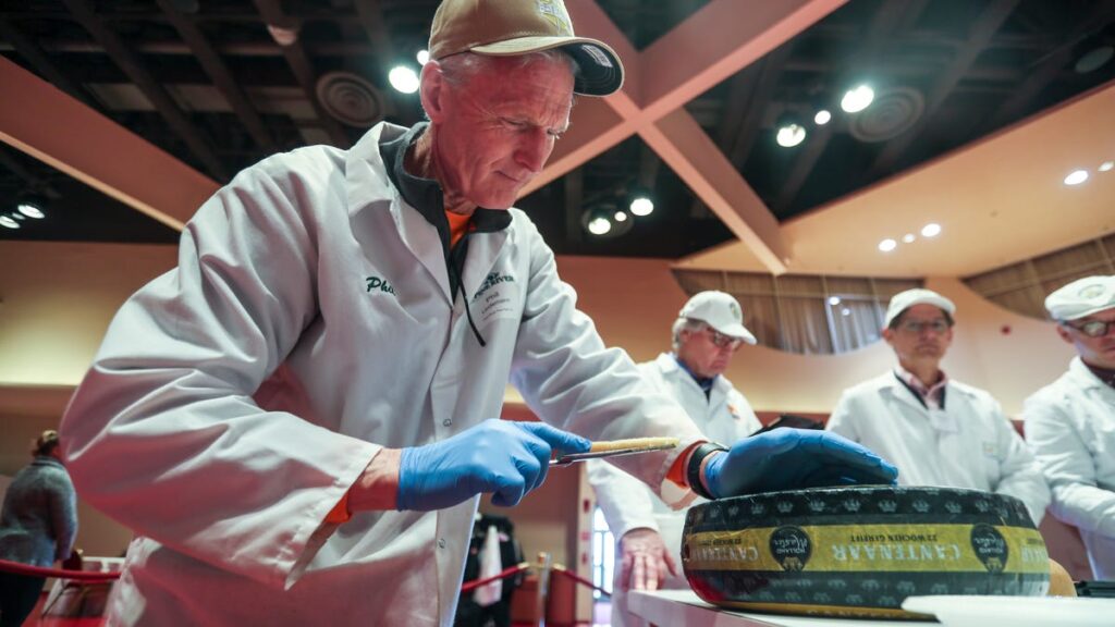 Daniel Higgins | Green Bay Press-GazetteEditor’s note: The story has been updated to correct the name of cheesemaker Emmi Roth.MADISON – If you wanted to make a charcuterie board with the world’s best cheeses (technically speaking), seven would come from Wisconsin cheesemakers.If you want the best cheese according to the judges at the World Championship Cheese Contest, you’re looking for the Gourmino Le Gruyère from Mountain Dairy Fritzenhaus in Bern, Switzerland. It’s the third time the cheese has taken the top honor at the contest having won in 2020 and 2008. Still, it was a good year for Wisconsin cheesemakers with seven of the 20 finalists and winning 45 best-of-class categories. On top of that, cheese curds debuted in this year’s contest, and Wisconsin swept both the regular and flavored categories.Another past champion in the finals was Roth Grand Cru Surchoix from Emmi Roth — the last American cheesemaker to win the World Championship Cheese Contest.Tim Omer, Emmi Roth president and managing director, said the cheeses that typically win are aged. Their winning Grand Cru ages for 10 months. “I love string cheese, I love cheese curds,” Omer said, “But when you have a year to mature for character and depth and nuance, and you let your cultures work and the bacteria that’s in the milk work, you have a much bigger advantage because the complexity is way deeper.”While fresh cheeses (those that aren’t aged) like curds and string didn’t make the finals, Odyssey Peppercorn Feta from Klondike Cheese Co. in Monroe was being scored against a multitude of mature cheeses.Other mature cheeses from Wisconsin makers included Ocooch Reserve (a hard sheep’s milk cheese aged over 6 months) from Hidden Springs Creamery in Westby and Red Rock (a bloomy rinded cheddar with a slight blue vein aged at least 60 days) from Roelli Cheese in Shullsburg.Hosted biennially by the Wisconsin Cheese Makers Association since 1957, the World Championship Cheese Contest drew 2,978 entries in 144 classes by cheesemakers from 29 countries, including the United States with entries from 33 states.Fifty-three international experts from 16 countries and 13 states judged this year’s entries at the Monona Terrace Convention Center in Madison.Franco Sessa of Whitestone Cheese in New Zealand said being selected to be a judge was like being nominated for an Oscar. He’s worked in the New Zealand specialty cheese industry for 21 years and has been a judge in other big cheese contests, but this was his first time judging at the World Championship Cheese Contest.He said all of the finalists were nearly perfect and you really needed to look for a reason to deduct points from any of them.Cheese graders, cheese buyers, dairy science professors and researchers with more than 700 combined years in the the dairy processing industry scored the cheeses in three rounds to determine the best of class. This contest focuses on technical aspects of cheesemaking beyond just the flavor or what necessarily is a best-selling cheese for a company.Problems with packaging, moisture levels and even cracks in a plug of cheese pulled from a large block may lead to deductions that would go unnoticed by most consumers.For example, the flavored cheese curds need to have a balance between the added flavor and cheese flavor, said Luis Jiménez-Maroto, an assistant coordinator with the Center for Dairy Research in Madison. Consumers might not care about that balance with some of the best selling flavored curds.Though when it came to curds, the squeak was a consideration for judges Marianne Smukowski, a dairy industry specialist for 35 years, and Kerry Kaylegian, an associate research professor at Penn State University whose expertise includes dairy product quality. That’s because in addition to their extensive cheese expertise, both have been longtime Wisconsin residents and understand the appeal of the curd.Kaylegian calls curds the world’s greatest finger food. “For me a lot of the attraction of a curd is the textural experience. The snackability,” said Smukowski.For judging purposes they were looking for curds with a clean milky flavor, salt and a “little acid note is good.” Of course the night before scoring fresh curds, they indulged in an order of fried cheese curds and said many other judges at the restaurant were doing the same.20 CHEESE FINALISTSThe 20 cheeses scored in the final round were chosen from the category winners.Seven finalists came from Wisconsin cheesemakers:Two other cheeses in the United States also made the finals.The remaining finalists came from European cheesemakers.WISCONSIN CHEESEMAKERS CATEGORY WINNERSContact Daniel Higgins dphiggin@gannett.com. Follow @HigginsEats on Twitter and Instagram and like on Facebook.