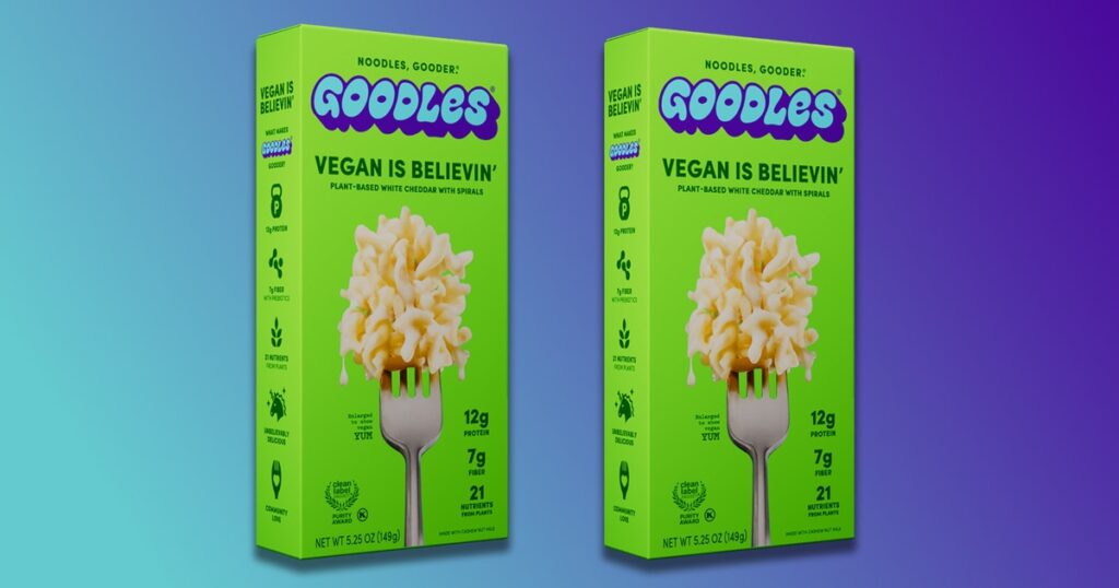 On June 28, macaroni and cheese brand GOODLES will launch its first vegan flavor. Aptly named Vegan Is Believin’, the new vegan mac and cheese will be the first dairy-free offering under the GOODLES brand. The first brand to launch under parent company Gooder Foods, GOODLES was founded last year by actress Gal Gadot (known for her leading role in 2020 film Wonder Woman 1984); former Annie’s President Deb Luster, CEO Jen Zeszut (former CEO at baby food brand Cerebelly), Paul Earle (brand entrepreneur and professor at Northwestern); and Molly Michet, a R&D leader and food scientist formerly of Dreyers, CLIF Bar and Plum Organics. The brand’s mission is to disrupt the boxed mac and cheese space by bringing more nutrition to the category with its proprietary pasta formulation that features 21 nutrients extracted from plant-based ingredients such as kale, mushrooms, and chickpeas. While it initially launched with four non-vegan offerings, GOODLES stepped into the dairy-free space with Vegan Is Believin’—spiral noodles with a vegan white cheddar sauce—to bring its innovative mac and cheese to a wider consumer base. And the brand was intentional in crafting its first vegan mac and cheese to have a strong nutritional profile. “Vegan Is Believin’ Mac and Cheese has the same 21 micronutrients as GOODLES dairy-based flavors, and it still packs a punch of protein, with 13 grams of plant-based protein per one cup prepared serving—the same as two hard-boiled eggs,” Ilana Mulhstein, M.S., R.D.N, GOODLES’ Nutritional Advisor, told VegNews. “For comparison, GOODLES dairy-packed Cheddy Mac has 15 grams of protein per cup. The vegan flavor has even more heart- and gut-healthy fiber, with a whopping 7 grams per serving.” GOODLES gets into vegan mac and cheese Creating GOODLES’ nutrition-packed pasta took 1,000 tries until the team landed on a final formulation that worked as a base for its mac and cheese. While reinventing pasta in this way was hard work, Mitchet tells VegNews it was a worthwhile endeavor. GOODLES “Because I love pasta so much, and wanted to create something the market has never seen before,” Mitchet said. “It had to look, feel, and taste like regular wheat pasta, but would give back extra nutrition and satiety using clean ingredients. GOODLES was founded by energetic, innovative, and savvy food industry professionals, and I knew the power of this team could actually make it happen.” GOODLES came to market with four dairy-based flavors: Cheddy Mac, Mover & Shaker, Shella Good, and Twist My Parm. With Vegan Is Believin’, the brand expands into the lucrative dairy-free category with an option that is kinder to animals and the planet. “We love our cheese around here, but we’re also mindful of the planet and our health,” Mitchet said. “As a California company, we adore farmer’s markets, veggies, and plant-based foods, even if we’re not all pure vegans. We really wanted to create another delicious and nutritious version of GOODLES that gives the same satisfaction and comfort of dairy mac and cheese.” GOODLES products are available through the company website, in-store at Target, and will expand to additional retailers in coming months. Kraft Heinz Kraft’s dairy-free mac and cheese GOODLES was founded with the intent to disrupt a category dominated by Kraft Heinz—which introduced its signature blue box mac and cheese in 1937. Prior to the launch of Vegan Is Believin’, brands such as Annie’s and Daiya Foods have brought dairy-free innovations in the boxed mac and cheese category, and Kraft is looking to update its portfolio, too. In Australia, Kraft entered into the dairy-free category last year with the launch of Kraft Vegan Mac & Cheese. The brand’s first vegan mac and cheese was developed as a “contemporary” take on the classic boxed meal and is both gluten-free and vegan-certified with pasta made from rice flour and a dairy-free sauce. The new product is offered in the same classic blue box but with prominent vegan messaging throughout. Kraft even modified the cooking instructions to suggest using soy milk instead of traditional cow’s milk. While Kraft has yet to bring this innovation to regions outside of Australia, the brand is working on innovative products stateside, as well. Earlier this year, Kraft teamed up with Chilean startup TheNotCompany (NotCo) to form joint venture The Kraft Not Company. Under this partnership, the consumer goods giant will release new products made with the help of NotCo’s technology, a platform that uses artificial intelligence to recreate vegan versions of animal products. For more about vegan mac and cheese, read: