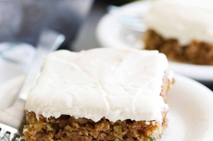 Moist and addictive, this Zucchini Cake is filled with zucchini, pineapple and coconut and is topped off with a silky...