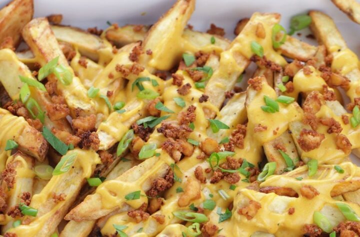 539sharesCrispy oven baked fries + melty stretchy gooey vegan nacho cheese + homemade tofu bacon bits = the best ever...