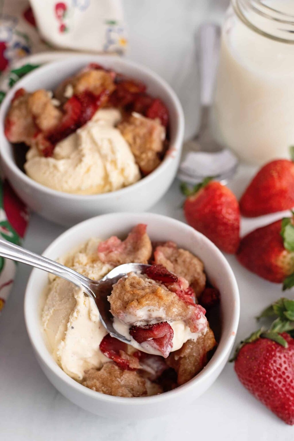 There are some things in life that just have to be experienced and one of them is this scrumptious Cream Cheese Strawberry Cobbler. Do you remember as kids what it was like to wake up to the aroma of baking in the house. How the smell of freshly baked cookies, pie, or even cobbler made you get out of bed and run to the kitchen to see what was cookin’? There are so many times when my son was a teenager that he just didn’t want to get out of bed. But one way I could lure him out was bakin’ this favorite dish right here. He LOVES this cobbler with a little ice cream or whipped cream on top. He may not have been real talkative at the table during those teen years but at least this got him out of his room and put a smile on his face, but only for a second of course! Where Did Cobblers Come From Anyway? It appears that our cherished cobbler was an improvisation of the beloved pie. According to Wikipedia, the cobbler “originated in the British American colonies. English settlers were unable to make traditional suet puddings due to lack of suitable ingredients and cooking equipment, so instead covered a stewed filling with a layer of uncooked plain biscuits, scone batter or dumplings, fitted together.” They have many names and depending on where you are from you might hear them called tart, pie, torte, pandowdy, grunt, slump, buckles, crisp, croustade, bird’s nest pudding or crow’s nest pudding. How Do You Know It’s A Cobbler? This old-fashioned fruit dessert usually features a fruit filling baked with a crust. The crust can be solid or either a solid sheet or “cobbled” together as in this Cream Cheese Strawberry Cobbler recipe. Usually the crust is placed over the fruit, but it can also go either on top or the bottom and sometimes both depending on your preference. This article explains the difference between the many different versions. Now let’s get on to cookin’ so your kitchen can smell like heaven… The Ingredients You Will Need for This Strawberry Cobbler Recipe are: one cup all purpose flour 1 cup swerve one cup milk or greek yogurt 1/2 tsp baking powder ½ t. cinnamon, optional 1/2 tsp vanilla extract (optional) 2 cups strawberries cut into halves or thirds 1/2 stick butter cream cheese 4 oz cut in squares or more depending on how much cream cheese you want* Tip About The Cream Cheese *If you want the cream cheese to be melted a bit more into the cobbler versus what I made, then leave the cream cheese out to soften real good before putting in on top of the cobbler for baking. We like a big chunk of cream cheese with our servings but some people like it blended it more. Do what cranks your tractor How To Make Cream Cheese Strawberry Cobbler Recipe Preheat oven to 400 degrees Pour melted butter into the bottom of a 9×13-inch glass baking dish. Mix milk or yogurt, flour, swerve, baking powder and vanilla extract and cinnamon (both optional) together in a small bowl; It will look something like this Plop pieces/scoops over the butter in the baking dish. Do not mix the butter and the batter. Arrange strawberry pieces on top of the batter. You can spread the batter a bit if you like but don’t mix it with the butter. Place the cream cheese squares around the strawberries. Now here is where you could go crazy with the cream cheese if you like. You can see in the picture my cream cheese squares are still a little solid so if you wanted them to spread out then put softened cream cheese in there at this point. Bake in preheated oven until top is nice and golden brown and edges are bubbling. May need to cover with foil if edges brown but no bubbling, 30 to 45 minutes. By now I am feeling a bit woozy from the beautiful aroma floating around my kitchen. And I can’t wait to add my vanilla ice cream and dig into this mouth watering cobbler. I hope you can make as soon as possible!! Print Cream Cheese Strawberry Cobbler Ingredients stick butter cup All purpose flour cup Swerve or sugar or your favorite sweetener cup milk or greek yogurt tsp baking powder tsp cinnamon Optional tsp vanilla extract Optional cups strawberries cut into halves or thirds oz cream cheese softened and cut into squares InstructionsPreheat oven to 400 degrees Pour melted butter into the bottom of a 9×13-inch glass baking dish.Mix milk or yogurt, flour, swerve, baking powder and vanilla extract and cinnamon (both optional) together in a small bowl; scoop out over the butter in the baking dish. Do not mix the butter and the batter. You can smooth the batter down a little if you like without mixing it and the butter and then arrange strawberry pieces on top of the batter. Place the cream cheese squares around the strawberries. Bake in preheated oven until top is nice and golden brown and edges are bubbling. May need to cover with foil if edges brown but no bubbling, 30 to 45 minutes. NotesIf you want a different sweetener than Swerve here is a list of a bunch of different choices with handy conversions Chocolate Cobbler Recipe (Possible Options for Food Allergies) Cinnamon Cobbler Warm and Wonderful Easy Berry Cobbler Recipe Apple Pecan Cobbler Recipe The post Cream Cheese Strawberry Cobbler appeared first on Southern Plate.