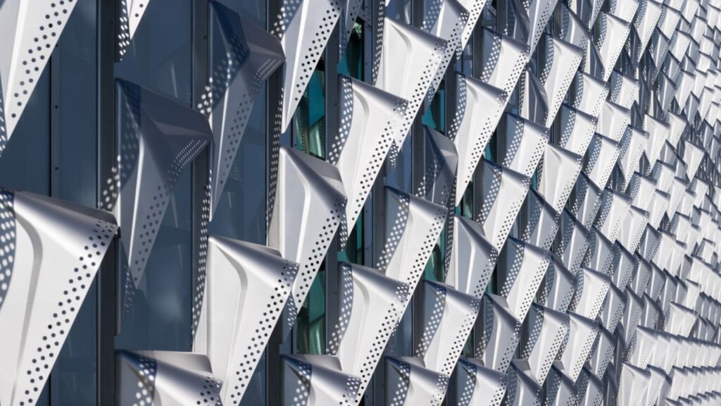 The metal screen that wraps around much of the new Science and Engineering Complex at Harvard University is a piece of advanced engineering in motionless action. Made of 14,000 panels of precisely formed and cut stainless steel, it appears to be a gigantic cheese grater. But the facade is actually a finely tuned device for controlling both the light and the heat that enters the building. Modeled to block the heat of the summer sun and allow it in during the winter, the facade’s panels are an intricate but stationary control system that dramatically reduces the building’s heating and cooling requirements compared to a traditional HVAC system, bringing the complex’s carbon emissions down by an estimated 42%. The facade manipulates light by selectively reflecting the sun into the darker parts of the half-million-square-foot building, cutting down on its electricity costs. [Photo: courtesy Behnisch Architekten]“The idea was to do as low-tech of a building as possible,” says architect Stefan Behnisch, whose Boston- and Germany-based firm Behnisch Architekten designed the complex. Reducing the building’s heating, cooling, and lighting requirements is part of the way Behnisch and the university are hoping to address the large greenhouse-gas footprint of such a big complex. Buildings account for nearly three-quarters of electricity use in the U.S., and even some supposedly high-performance buildings rely on energy-inefficient mechanical systems to keep them comfortable. Using a passive facade proved a much more environmentally sustainable approach. “The goal is to keep the sun on the 200 hottest days completely out of the building.” [Photo: courtesy Behnisch Architekten]Set to open to students later this year, the Science and Engineering Complex is the first major element of Harvard’s campus expansion in Boston’s Allston neighborhood, across the Charles River from its main campus in Cambridge. The complex was intended to stand as an emblem of the prestigious university’s cutting-edge science and engineering capabilities, and also an opening act for the expansion. The low-tech facade of the building, perhaps counterintuitively, is the smart solution for a place with such a high-tech purpose and sets the stage for the innovations the complex is likely to help foster. “It was expected that this first building would set the terms for the future campus development. So it was not easy to develop,” Behnisch says. [Photo: courtesy Behnisch Architekten]Originally planned in the early 2000s as a laboratory building, the project hit a wall during the financial crisis. Once the dust settled, the project was reimagined as a more diverse building, housing labs, lecture halls, and classrooms to accommodate bioengineering, computer science, data science, electrical engineering, materials science, and mechanical engineering—many different types of spaces to pack in, even for a building complex this large. “It became a very complex program,” Behnisch says. Intended to be one of the greenest buildings at the university, the project was designed to meet the LEED Platinum environmental standard and the Living Building Challenge health and wellness standard, which certifies that its building materials are free of common harmful chemicals such as asbestos and chlorofluorocarbons. The building also met the standards of Harvard’s own Healthier Building Academy, a partnership among faculty from the university’s Office for Sustainability and the schools of engineering, public health, and medicine. [Photo: courtesy Behnisch Architekten]“Quite a few of the materials we normally use especially here in Europe for fire protection or even wood materials, we couldn’t use them because we couldn’t get the necessary environmental certifications from the companies. It was a laborious route,” Behnisch says. “The university was very ambitious. Only a few clients are willing to undertake this effort.” Behnisch says it was important from the start that the project be a physical representation of the university’s scientific focus. The facade became the most visible way of putting those ideas into built form. Behnisch Architekten partnered with the environmental engineering and design firm Transsolar to develop the facade’s approach and refine its design. Shaped like punched-through picture frames, with elongated fins around their top edges to block or redirect the sun, the panels create a grid outside the building that, while not invisible, still allows people inside to see out. [Photo: courtesy Behnisch Architekten]Getting the facade’s 14,000 panels built was another challenge. “I always had the idea that it was not different from a car hood,” says Behnisch, suggesting that the rectangular-shaped panels could likely be stamped out of steel using a typical two-form press. But this approach was found to be less than ideal. “The two forms are usually grinding, so the metal can’t flow easily, it’s stretched, and you need more material to make it stable.” Behnisch reached out to German fabricator Edelstahl-Mechanik to try a different approach, using a single form and high-pressure water to push the flat metal plates into shape and laser-cutting the fine details for each panel. “We were able to save about a third of the material,” Behnisch says. The real savings will come over the life of the building, as the stationary facade passively blocks heat and allows in light. Along with the building’s other environmentally sustainable features, the facade will help it produce fewer carbon emissions than a comparably sized building. The facade system builds on one used in another, smaller project, in Switzerland, but Behnisch says the Harvard example shows how effective the concept can be at reducing energy requirements on a large scale. He hopes to refine and replicate the concept on other projects going forward. “When we look at the energy consumption of the building sector, 