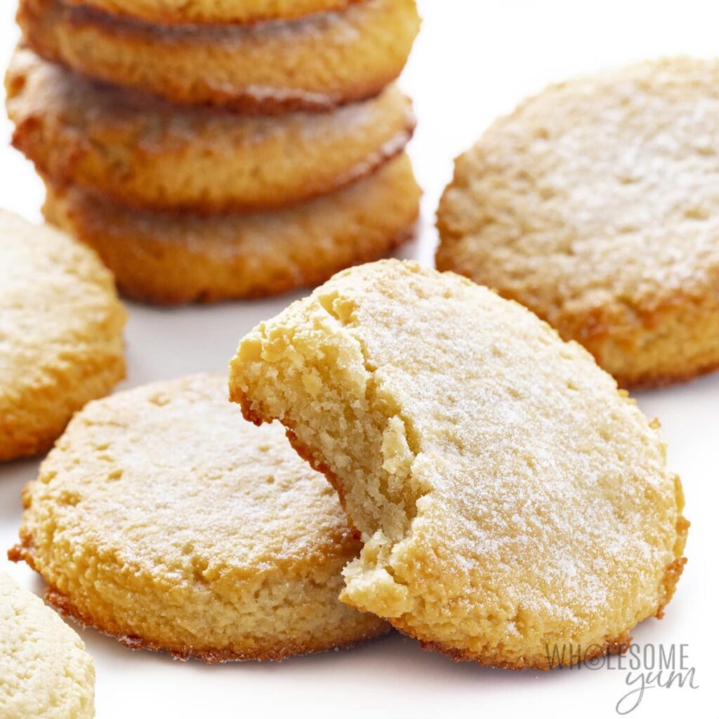 This post may contain affiliate links, which help keep this content free. (Full disclosure) Table Of Contents show These keto cream cheese cookies are the keto cookies recipe that everyone at the table loves! With a few simple ingredients and kitchen tools, I’ll show you how to make the best delicate and buttery low carb cookies recipe fit for any occasion — all with minutes of prep. Plus, get my top tips for helping your keto cookies bake perfectly every time! Cream cheese makes great desserts (low carb cheesecake is my most popular!) and adds delicious tang to breakfasts, like cream cheese pancakes. To make a keto cookie with cream cheese, though, I took inspiration from my keto shortbread cookies and made a few tweaks to give them more structure and complex flavor. This keto cookie recipe is perfect for holidays or anytime you need a little treat in your day. For a soft, chewy consistency and buttery flavor, these cream cheese keto cookies depend on two key ingredients: Besti Monk Fruit Allulose Blend and Wholesome Yum Almond Flour. Unlike other sugar substitutes that can make cookies brittle or give them an aftertaste, this one helps them bake up soft and taste just as sweet as regular cookies — all with 0 grams net carbs and no added sugar. Combine with this finely ground almond flour, and you get low carb sugar free cookies with perfect taste and texture! Why You’ll Love This Low Carb Keto Cookies Recipe This section explains how to choose the best ingredients for easy keto cream cheese cookies, what each one does in the recipe, and substitution options. For measurements, see the recipe card below. How To Make Keto Cream Cheese Cookies This section shows how to make low carb cookies, with step-by-step photos and details about the technique, to help you visualize it. For full instructions, including amounts and temperatures, see the recipe card below. Tips For The Best Keto CookiesYou can see that this keto cookies recipe is pretty straightforward, but here are a few tips for a great result: Variations Storage Instructions More Keto Cookie Recipes If you like a quick and easy keto cookies that fit your macros, you’ll love these other popular low carb cookie recipes: Tools To Make Low Carb Cookies Cream Cheese Keto Cookies Recipe Low Carb Keto Cream Cheese Cookies Recipe Sweet, buttery low carb cream cheese cookies are one of the best keto cookies recipes! They’re fast, easy, and need just 6 ingredients + 10 minutes prep. Prep: 10 minutes Servings: 24 (adjust to scale recipe) Recipe Video Like this video? Subscribe to my YouTube cooking channel for healthy recipes weekly! (Click the bell icon to be notified when I post a new video.) Tap underlined ingredients to see where to get them. Please turn Safari reader mode OFF to view ingredients. 1/4 cup Unsalted butter (softened) ▢ 2 oz Cream cheese (softened) ▢ 1/3 cup Besti Monk Fruit Allulose Blend (or up to 1/2 cup if you like them very sweet) ▢ 1 large Egg (at room temperature) ▢ 1 tsp Vanilla extract ▢ 1/4 tsp Sea salt ▢ 1 tbsp Sour cream (optional, but recommended) ▢ 3 cups Wholesome Yum Blanched Almond Flour ▢ Tap on the times in the instructions below to start a kitchen timer while you cook. Preheat the oven to 350 degrees F (177 degrees C). Line a large cookie sheet with parchment paper.Use a hand mixer or stand mixer to beat together the butter, cream cheese, and sweetener, until it’s fluffy and light in color.Beat in the vanilla extract, salt and egg. Beat in sour cream, if using (optional).Beat in the almond flour, 1/2 cup (64 g) at a time. The dough will be soft. If it sticks to your hands when you touch it, refrigerate for 30 minutes.Use a medium cookie scoop (about 1 1/2 tbsp, 22 mL volume) to scoop balls of the dough onto the prepared cookie sheet. Flatten with your palm.Bake for about 12-15 minutes, until the edges are lightly golden. Allow to cool completely in the pan before handling (cookies will firm up as they cool, but are intended to be soft).Last Step: Leave A Rating! Share your recipe picture by tagging @wholesomeyum and hashtag it #wholesomeyum on , or in our Facebook support group, too – I’d love to see it! Readers Who Liked This Easy Recipe Also Made: Serving size: 1 cookie Nutrition info does not include optional sour cream. If you prefer to buy pre-made cookies, these are delicious! Nutrition Facts Amount per serving. Serving size in recipe notes above. Nutrition facts are provided as a courtesy. Have questions about calculations or why you got a different result? Please see our nutrition policy. Keywords: keto cookies, keto cookies recipe, keto cream cheese cookies, low carb cookies Calories: 110 kcal Want to save this recipe? Create a free account to save your favorite recipes! © Copyright Maya Krampf for Wholesome Yum. Please DO NOT SCREENSHOT OR COPY/PASTE recipes to social media or websites. We’d LOVE for you to share a link with photo instead. 🙂