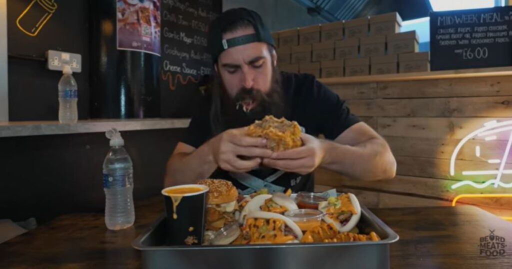 A hungry diner has become first person ever to eat £30 Preston meal challenge – which comes with a pint of melted cheese. The popular YouTuber and competitive eater Adam Moran (better known as BeardMeatsFood ) visited Tipsy Chef in Preston where he made his attempt at the Tipsy Bao Box challenge. The £30 Tipsy Bao Box consists of one triple smash cheeseburger, their signature chicken and candied bacon burger, four pork belly bao buns, dirty hash browns and a pile of fries. The box is free if you manage to eat every last bit in half an hour. The 36-year-old has 2m subscribers on YouTube and has built his brand around his career as a professional competitive eater. The Youtuber, from Yorkshire, is Europe’s No. 1 Competitive Eater and is one of the highest ranked competitive eaters in the world. He is a qualified personal trainer and says that competitive eating together with two hours’ weight training per day has improved his body fat ratio. When Adam arrived at Tipsy Chef, which is based in the the indoor Preston market, he said he was ‘doubting himself’ in his ability to complete the challenge. He said: ” I dunno, thirty minutes? I’ve lost some confidence in my own ability lately, I’ve been a bit flaky. Hopefully this goes alright though.” As Jay Oates, the owner of Tipsy Chef, walked Adam through ‘The Tipsy Challenge’, Adam asked if the cup of cheese sauce needed to be finished too, to which Adam replied it did. There have been six previous attempts on the challenge, but no-one had completed it yet, although Jay said one person had come really close. After wolfing down the main burgers and bao buns in about 8 minutes, Adam ploughed through the mountain of chips and hash browns, covered in the cup of cheese sauce. After 21 minutes and 22 seconds, Adam became the first person ever to complete the ‘Tipsy Challenge.’ He said it was ‘really fun until about half way through the chips’. After inhaling the challenge, Adam was presented with a specially made ‘bacon cheese cake’ for his efforts. One commenter loved this gesture from Tipsy Chef, saying: “That the chef made a desert for you when he heard you were coming, instead of sneaking more food onto the plate just so his challenge isn’t beaten is a huge credit to him and his business! I’ll be trying that place out next time I’m in the area.” Another loved the look of the challenge, saying: “This looks like one of the tastiest challenges you’ve ever done.” A third said: “The fact that he still tried some dessert at the end is insane, right after such a massive meal.”