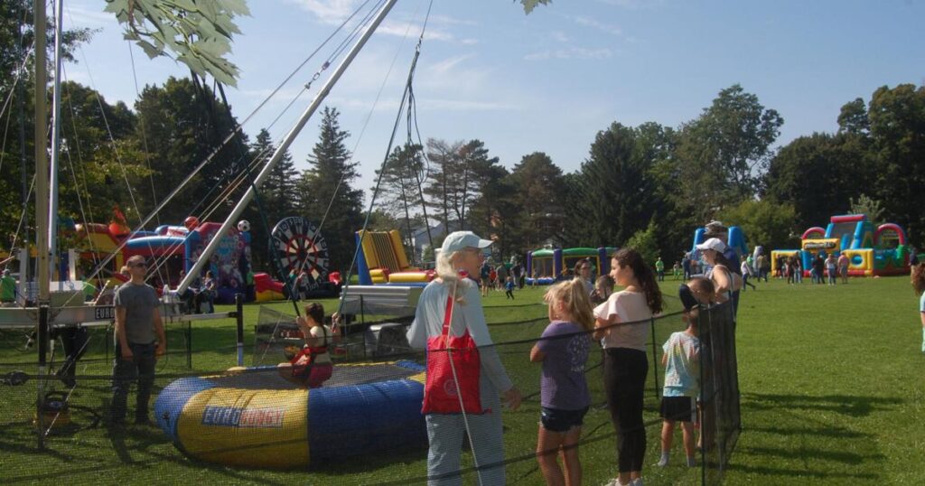 LOWVILLE — Complete with the giant cheesecake, the annual Cream Cheese Festival returned to historic downtown Lowville Saturday.According to festival chairman Jeremiah S. Papineau, the attendance was a lot better than at last year’s event which was modified due to the pandemic.“We are very excited to see attendance increase this year as we continue to work our way out of the pandemic,” he said. “We have had a lot of great vendors and a lot of great entertainment as usual. All of this is thanks to our amazing committee of volunteers. Without them, we wouldn’t be able to host an event like this for the community.”The 1,100 pound cheesecake provided by Heinz Kraft was dedicated in memory of Brian Western. After the unveiling of the stars and stripes decorated creation, Congresswoman Elise Stefanik along with state Senate candidate Mark Walczyk and U.S. Senate candidate Joe Pinion had the honor of cutting the first slices.Having a slice of the giant cheesecake, Mikayla T. Riley of Evans Mills and Hannah C. Stokes of Fort Drum, said they enjoyed the creamy sweet treat.Ms. Riley said she learned of the festival from a coworker and was excited to attend for the first time.“I was absolutely drawn by the giant cheesecake to come,” said Ms. Stokes. “It was delicious.”“I’m glad the weather worked out,” Ms. Riley said, noting as the sun began to warm things up, the day started out very chilly.The ladies and their soldier companions agreed they would definitely come back to the event next year.Vendors including nonprofits, crafters, banks, artisans and food trucks lined The Parkway and the section of North State Street from Bostwick to Dayan streets which were blocked off for the event.Ava J. Connell, 6, of Fort Drum took a spin on the wheel at the Lewis County Dairy Ambassador booth and said she was excited to win a prize.Brynnleigh J. Hoffert, 2, of Lowville, with her father, Alex, selects a duck from the pond at the Carthage Savings booth at the Cream Cheese Festival on Saturday. Elaine M. Avallone/Johnson Newspapers Brynnleigh J. Hoffert, 2, of Lowville, received a stuffed animal from Carthage Savings for picking the right duck in the pond.Her parents, Alex and MiKala Hoffert, said they come to the Cream Cheese Festival every year.“To buy stuff — to support the local businesses.” said Mrs. Hoffert.Live entertainment at the Main Stage on North State Street included Ransom, Tough Luck, Undefeated, Josh Cox Band and Double Barrel Blues Band. In addition, musical entertainment was offered at the Veterans Stage next to American Legion Post 162 with Ken Powis, Gabe Shepherd, Jim “Jimmy G” Gratch, Bill & Kass and A.J. Fleming & Jasyn Griffin.For $5, children had unlimited access to the bounce houses, inflated soccer field, climbing challenge and mechanical bull in the Children’s Discovery Park, featuring attractions by Adventures in Climbing in Veterans Memorial Park along Parkway Drive.Benjamin Vaerewyck, 3, of Lowville, plays in the corn pit at Children’s Discovery Park during the Cream Cheese Festival in Lowville on Saturday. Elaine M. Avallone/Johnson Newspapers Mary J. Vaerewyck of Lowville watched as her grandson, Benjamin Vaerewyck, 3, transferred dried corn kernels from the large box to a plastic pan in the Children’s Discovery Park.“We came last year,” Ms. Vaerewyck said, noting they visited more of the vendors but this year it was all about Benjamin. “It’s good for him to experience something like this – to be around other kids.”During the festival, families also had the opportunity to obtain a Child Safe ID Badge from the Lowville Police Department.Hailee C. Webb, 10, of Carthage received her badge, saying she had gotten one a few years back and thought it would be fun to get another.Accompanied by her grandmother and a friend, Hailee said it was their first time at the event and she enjoyed getting ice cream from one of the vendors.Renee A. Roggie and Officer Brandon Arthur created the children identification cards which include the child’s date of birth, description, photo and fingerprints. Officer Arthur explained the information was shared to a database in Albany and parents can show the card to authorities if a child went missing. They recommended that a new card be obtained each year. The department holds the badge creation events upon request and will present one at the Zombie Run hosted by UP! United Prevention Coalition Oct. 1 at the Lewis County Fairgrounds.As an Amazon Associate I earn from qualifying purchases.