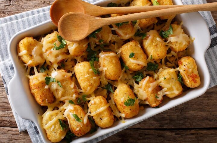 Top ground beef, veggies and cheese with tater tots and what have you got? An easy tater tot casserole recipe...