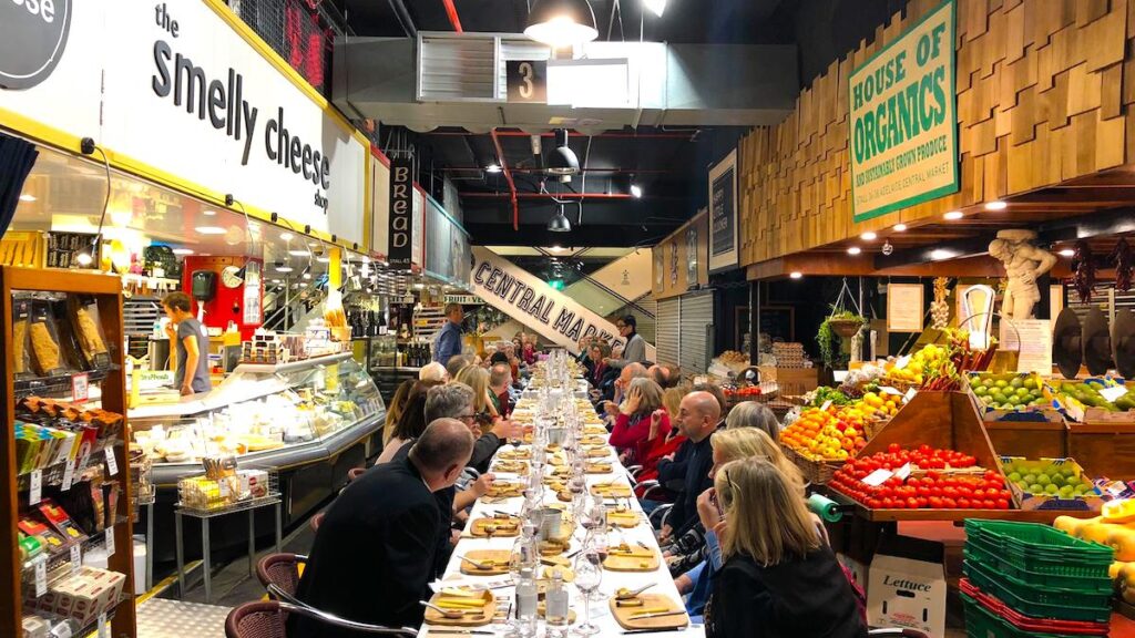 France is coming to Adelaide: The Adelaide Central Market’s Smelly Cheese Shop is hosting a night celebrating all things français, and we must say, we’re très excité. The much-loved fromagerie will transform the market to replicate a French cheese cave, serving up champagne and live entertainment for Bastille Day, France’s national celebration, on July 14. “It will be the ultimate sensory experience; Guests can smell, look, taste, touch, and listen to the cheese,” Smelly Cheese Shop owner and French cheese aficionado, Valerie Henbest, says. Guests will first get serenaded with French classics by two women dressed in Marie Antoinette-like costumes before entering into the redesigned marketplace, greeted with a glass of champagne and a quiche. There will be a beautiful 100-person table set up in the Adelaide Central Market––where customers are usually bustling around the stalls––covered in fruits and breads. As Henbest noted, the entire mood will be accounted for, from taste to sound to visuals; There will also be blue and red lighting––representing the French flag––illuminating the setup. While customers taste their five decadent cheeses from Smelly Cheese Shop and Herve Mons Affineur, which include a triple creme brie, a roquefort, and a Valençay, they will also drink Brimoncourt champagne. Overall, the night, which costs $95, will include five cheeses, four and a half glasses of champagne, a quiche, and a sweet dessert. The event will also see a Zoom call with a champagne producer and cheese expert from France who will educate the guests on their crafts, linking the evening straight to its country of inspiration. The Smelly Cheese Shop and its owner are the perfect hosts for such an event. The market staple has been hosting Cheese After Dark events for years, and this one is particularly well-matched, as Henbest is originally from Normandie herself. Missing France and her family, the cheese lover believes the immersive event, which transports guests right to Europe, is “special at a time when we can’t travel.” She’s excited for the night of cheese, champagne, live music, education, and an atmosphere that will feel as French as the offerings. “Cheese is an opportunity to explore culture, tradition, history, and geography,” “Everything you eat is coming from a certain place and culture, and I hope this event brings that sense of place to people; There’s more to the cheese than the cheese itself.” The event will take place on Wednesday, July 14, from 7 – 9:30pm. Find The Smelly Cheese Shop at #44, Adelaide Central Market, Gouger Street, Adelaide.