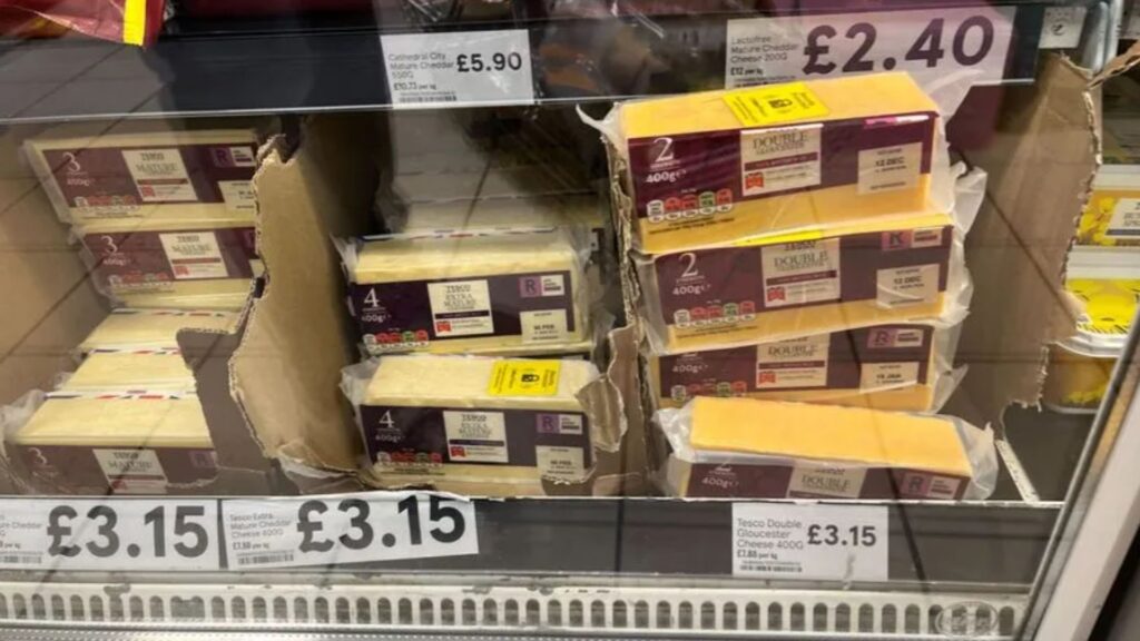 TESCO have started putting security tags on cheese amid reports of hard-up Brits having to steal everyday items due to rising costs. One customer said the move was a “sign of the times” after they saw a member of staff “slapping” the security stickers on a number of cheeses, including own-brand items.1As the cost of living crisis deepens and food prices soar, first-time shoplifters are “stealing to eat”, according to supermarket bosses. The customer, who was visiting a story in Taunton, Somerset, told SomersetLive: “This really is a sign of the times. “Having recently seen security tags on milk in Cornwall and now on own-brand cheese in Somerset, it makes you wonder how desperate people are becoming if supermarket chains are having to take such measures.” A branch of Tesco in Cornwall apologised for “human error” after four pint bottles of milk were tagged last month.READ MORE UK NEWSPictures taken by the customer at the Taunton branch show that Double Gloucester Cheddar and Extra Mature Cheddar, both of which cost just £3.15, had been tagged. The shopper added: “The security guard was in the store with a roll of the sticky security tags slapping them on the cheese in the chiller. “It’s tragic to think some people may be resorting to stealing such basic dairy items.” The stickers activate an alarm if a shopper tries to leave the store without paying for an item.Most read in The SunThey are commonly found on more expensive items and on alcohol, but there have been a number of reports recently of them being placed on more everyday goods. In July, blocks of cheese were tagged by an Aldi in Wolverhampton. Similarly, just this week, photos taken in a Co-op in Manchester showed household essentials like washing machine tablets locked up in alarmed plastic casings. Food has been going up in price as inflation spirals out of control. Shoppers face an increase of £533 in their supermarket bills, as prices have risen at their fastest rate since 2008. Tesco have been contacted for comment.