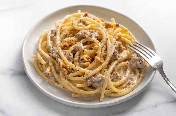 This blue cheese, sausage, and walnut pasta is so creamy and indulgent it feels worthy of a special occasion but...