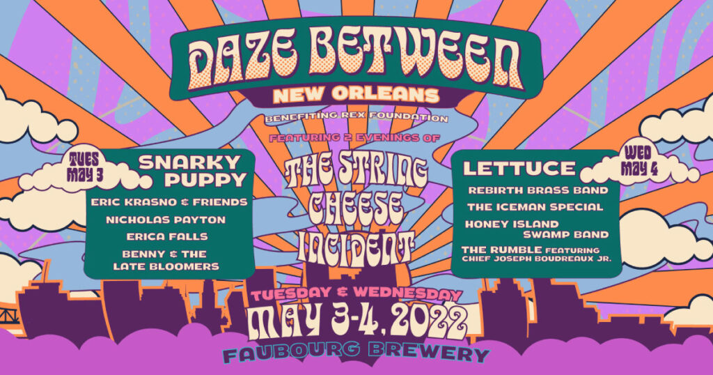 Daze Between New Orleans, a new music festival taking place in the Crescent City during the days between Jazz Fest weekends, has announced its inaugural artist lineup. The two-day event, scheduled for Tuesday, May 3rd and Wednesday, May 4th at New Orleans, LA’s , will tap into the worlds of jazz, funk, jam, folk, and beyond to serve up a musical gumbo worthy of the Big Easy’s unique cultural character. In addition to music, fans will be able to enjoy all that Faubourg has to offer, from a top-notch beer selection to fantastic traditional Louisiana cuisine. A portion of all proceeds will go to New Orleans-based nonprofit organizations via . Named for the period between the two weekends of the long-running when the Fair Grounds go quiet but the city stays alive with festive energy, Daze Between New Orleans will keep revelers dancing through the week. Both days of the event will feature headlining performances by Colorado jam-grass titans The String Cheese Incident in addition to a slew of nationally touring bands and eclectic local favorites, with music running roughly from 2:00 p.m. through 9:30 p.m. each day. Tuesday, May 3rd will include sets by globally renowned jazz-funk collective Snarky Puppy along with Eric Krasno & Friends, Nicholas Payton, Erica Falls, and Benny & The Late Bloomers. The Wednesday, May 3rd lineup will be highlighted by far-reaching psych-funk outfit Lettuce, in addition to Rebirth Brass Band, The Iceman Special, Honey Island Swamp Band, and The Rumble featuring Chief Joseph Boudreaux Jr. Daze Between New Orleans will take place at Faubourg Brewery’s recently renovated complex in New Orleans East. In addition to making use of the state-of-the-art brewery facility and taproom, the event—presented by Live For Live Music, Purple Hat Productions, GMP Live, and Rose Tours—will take over the brewery’s spacious back lawn for headlining performances and more. Founded as Dixie Brewing in 1907 and later rechristened “Faubourg,” a French word for “neighborhood,” Faubourg is the oldest operating brewery in New Orleans. While the original location was destroyed during Hurricane Katrina in 2005, New Orleans Saints and New Orleans Pelicans owners Tom and Gayle Benson purchased a majority stake and revived the brewery at its new home in 2019. It wouldn’t be a true New Orleans party without great food, and on-site “strEATery” will make sure fans are well fed with traditional Louisiana cuisine to go along with their Faubourg beer and malted cocktails throughout the event. Additional local food vendors will be announced soon. The festival will also host an Artist Village featuring a variety of local artisans and vendors as well as live painting exhibitions and a career-spanning gallery by renowned local painter , with a portion of proceeds benefitting Rex Foundation. “We are so excited to bring this new event to life at the beautiful Faubourg Brewery,” says GMP Live founder Gideon Plotnicki. “New Orleans is such a special place, especially during this time of year, and we are proud to create something new and meaningful in a city that is so near and dear to our hearts.” Adds Live For Live Music founder Kunj Shah, “To me, Jazz Fest has always been more than just a festival that takes place at the Fair Grounds on two separate weekends. It’s the food, it’s the culture, it’s the late-night shows. It’s a chance to recapture our love affair with New Orleans during the days between. With this new festival, we’re grateful for the opportunity to contribute something special to this city that has given us all so much music, culture, and inspiration.” Daze Between New Orleans is proud to partner with Rex Foundation, the Grateful Dead-founded organization that writes grants to small nonprofits doing great work in the arts, sciences, education, environment, indigenous culture, and social justice. In the spirit of the season, Rex Foundation will direct all charitable funds generated during the festival to New Orleans-based organizations. This will include a portion of ticket sales as well as proceeds from the Rex Foundation-hosted Daze Between New Orleans virtual auction, which offers fans a chance at NOLA- and Grateful Dead-themed artwork, experiences, and memorabilia. You can also donate to this campaign directly by texting DAZE to (202) 858-1233 or heading here. “We are truly honored and excited to bring a new Daze Between tradition to New Orleans at this wonderful venue and community resource, the Faubourg Brewery,” says Purple Hat Productions founder Paul Levine. “We are thankful to work with Rex Foundation to support several New Orleans charities. We appreciate the Faubourg Brewery team for giving us this opportunity and working with us to start something special that will contribute to the landscape in between weekends of Jazz Fest for years to come.” Various ticket options for the inaugural Daze Between New Orleans festival go on sale this Friday, March 11th at 1:00 p.m. ET / 12:00 p.m. CT. VIP tickets include expedited VIP entry; access to exclusive VIP bars, bathrooms, and viewing area; and a VIP parking pass. Super VIP tickets include all the perks of VIP in addition to one limited edition Daze Between New Orleans merch item, access to an exclusive Super VIP lounge, and access to exclusive Super VIP beer tastings in the brewery with the Faubourg Brewery brewmaster. Hotel packages for Daze Between New Orleans are also available. See below for a full list of artists due to perform at the inaugural Daze Between New Orleans at Faubourg Brewery on Tuesday, May 3rd and Wednesday, May 4th. For ticketing details and more information, head to the festival website. For updates, make sure to follow Daze Between New Orleans on Facebook, Twitter, or Instagram. Daze Between New Orleans – 2022 Festival Lineup The String Cheese Incident x2 Lettuce Snarky Puppy Eric Krasno & Friends Rebirth Brass Band Nicholas Payton The Iceman Special Erica Fall