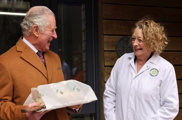 Charles, Prince of Wales and patron of cheesemaking, was caught on camera as he almost dropped a care package of...