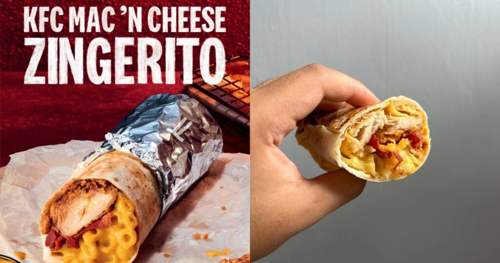 With Chinese New Year out of the way, it might seem like there’s not much to look forward to in Feb. Luckily, KFC has got us covered with the return of its Mac ‘N Cheese Zingerito, which will be available from 15 Feb 2023 onwards. Credit – KFC First introduced in Mar 2021 to much fanfare, the Mac ‘N Cheese Zingerito features a burrito packed with KFC’s signature Zinger Fillet, smokey turkey bacon, and creamy mac and cheese, which uses savoury mozzarella & cheddar cheese. The Mac ‘N Cheese Zingerito is available a la carte at S$7.15, but at an additional S$2, you can upgrade it to a Mac ‘N Cheese Zingerito Meal, which includes 1 Med Fries and 1 Reg Coke Zero. Heavy eaters can opt for the Mac ‘N Cheese Zingerito Box (S$11.25) which has an additional 1 Reg Whipped Potato and 1 Pc Chicken (Original/Hot & Crispy). KFC graciously provided us with the Mac ‘N Cheese Zingerito Box to try out. To be honest, I had a huge throwback when unboxing it, as this was my to-go meal after booking out of camp during National Service. And it tasted just as it did nearly 2 years ago, with every bite oozing with creamy cheese sauce and crispiness from the Zinger fillet and turkey bacon. I thought the Mac ‘N Cheese could have been cheesier or better yet, intermixed together with the cheese sauce, as it has always been a weak aspect of the dish due to its blandness. Still, I am more than happy that KFC is bringing this sure-fire item back. The Mac ‘N Cheese Zingerito also comes one day after Valentine’s Day. Perhaps noticing my weak game, KFC also provided us with cheesy pickup lines. Let us know if any worked for you! Other articles you might like: Top 10 Valentine’s Day dinners for a special night in Singapore 2023 Ramen Bar Shishido celebrates Valentine’s Day with limited edition Chocolate Ramen The post First dibs: KFC brings back Mac ‘N Cheese Zingerito from 15 Feb 2023 onwards appeared first on SETHLUI.com.