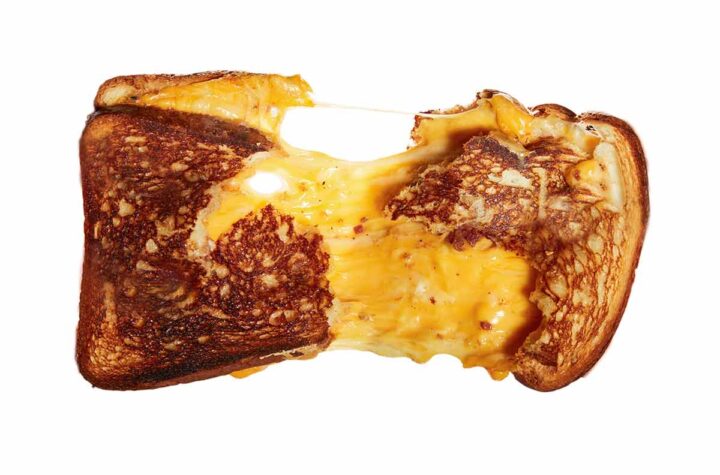 This challah grilled cheese with pastrami jam is made with plenty of melty Cheddar and Gruyère cheeses and a schmear...