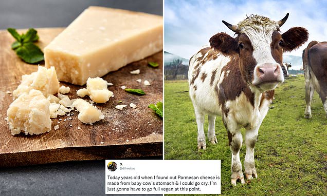 Social media users are bewildered to learn that traditionally, Parmesan isn't vegetarian - and uses the organ of a baby...