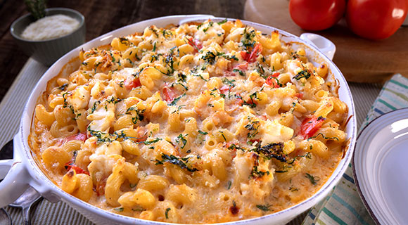 Kalamata olives, capers, roasted eggplant, garlic, tomatoes and the mild Greek cheese manouri make this sauce tangy and sweet at...